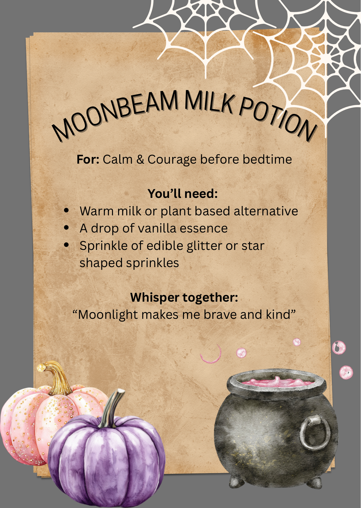 Each potion is simple, sensory-friendly, and fairy-approved — perfect for spooky snack setups, bedtime bravery, or playful tea parties.