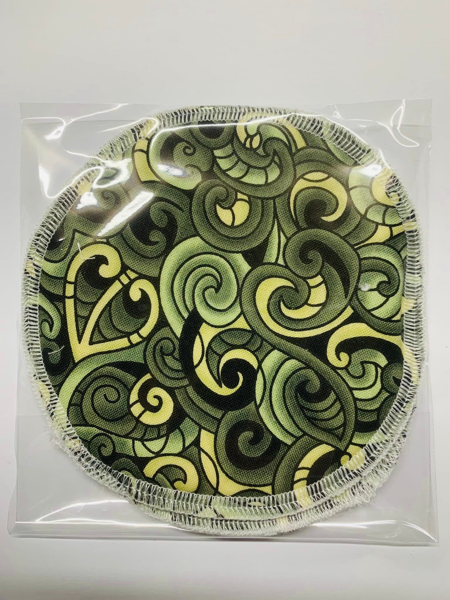 Our breast pads are made from super soft fleece, a super absorbent bamboo layer, PUL fabric to prevent leaks, and a pretty cotton top.
