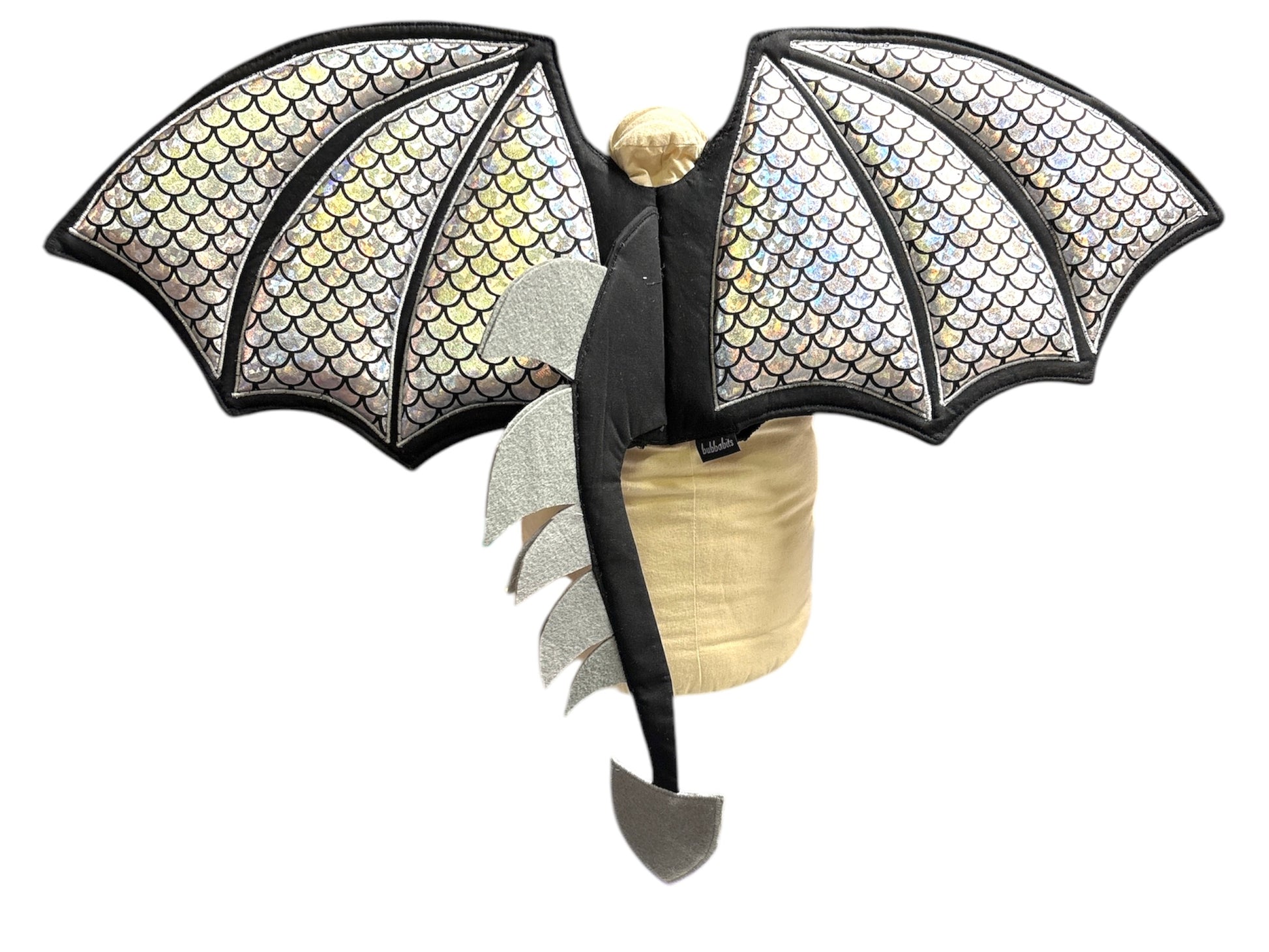- Whimsical Appeal: Beautifully detailed with a foil scaled fabric and a curled tail attachment, these wings bring a touch of magic to any outfit.