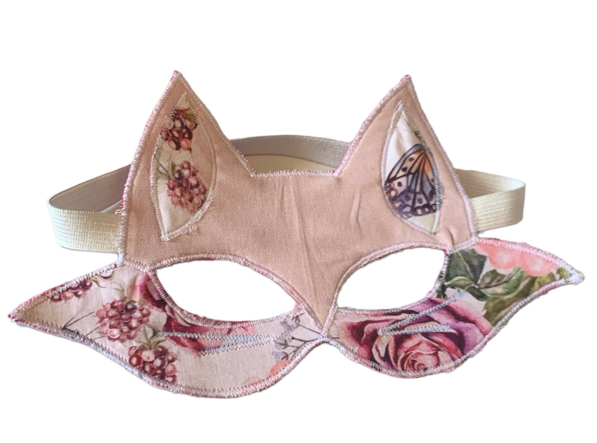 Each mask is crafted with a soft felt backing and adorned with unique appliqué pieces, ensuring that no two masks are alike.