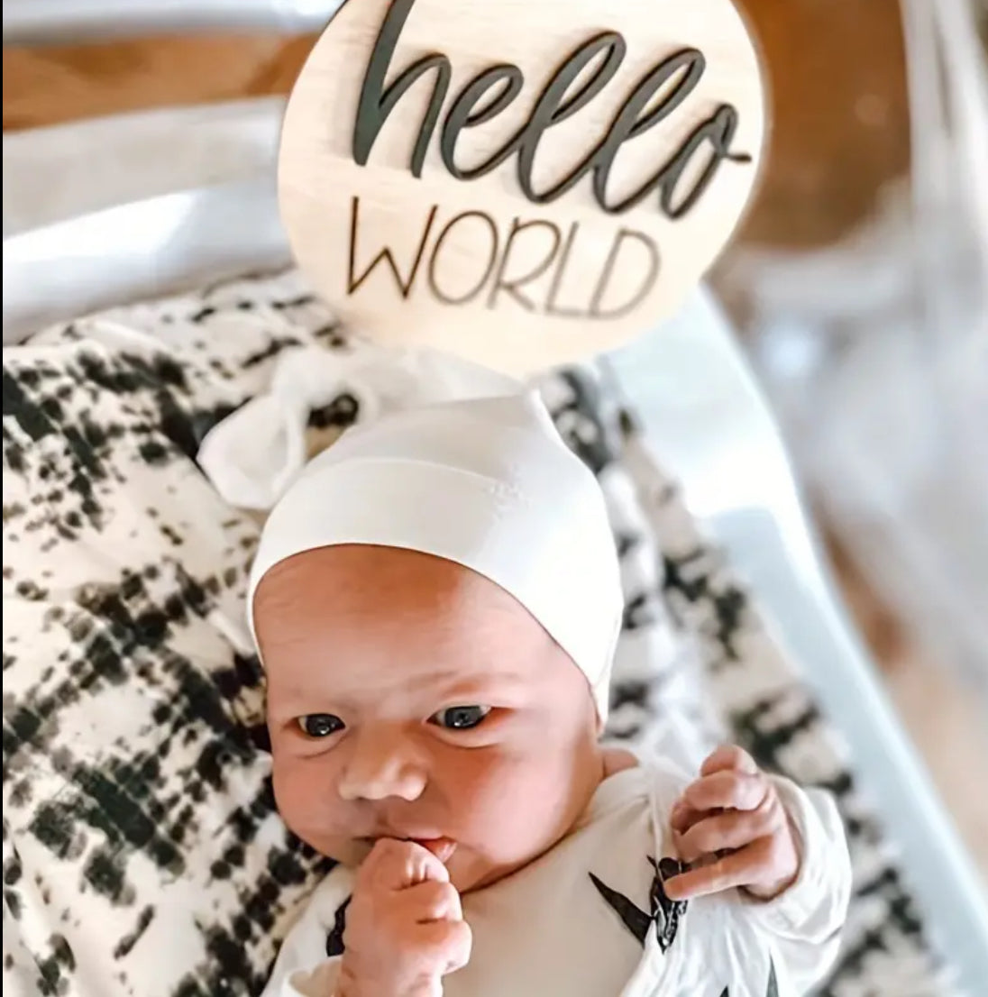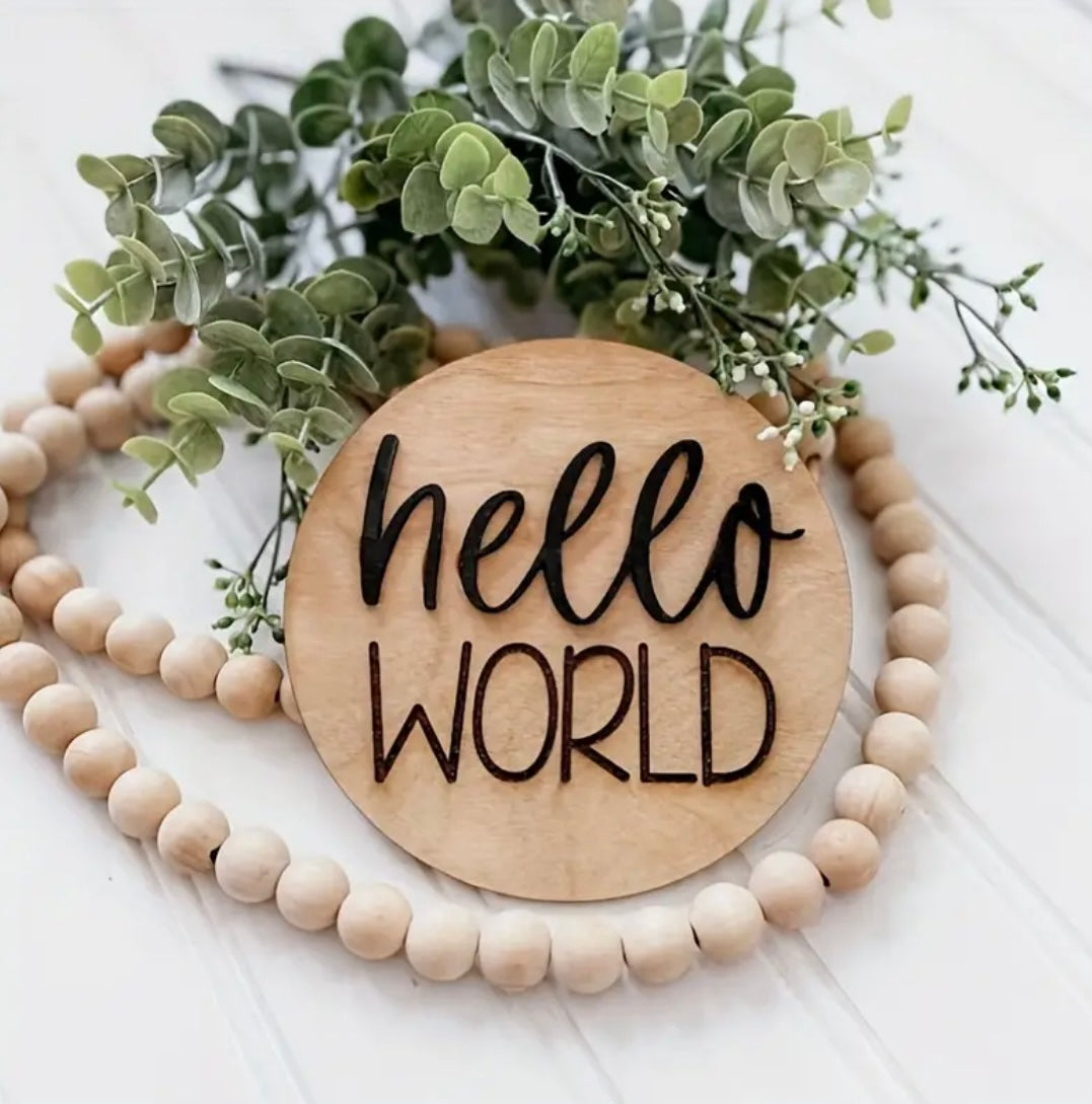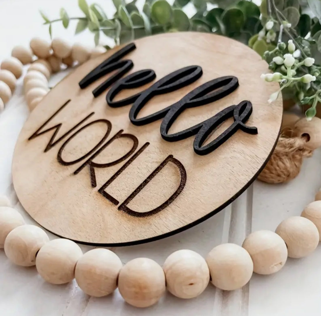 “Hello World” birth announcement sign/plaque