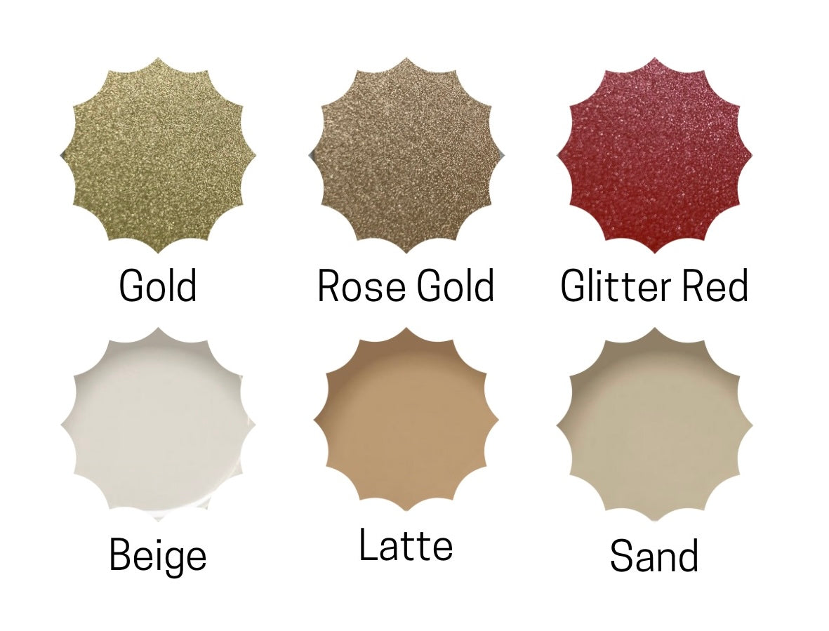 Each plaque is lovingly hand-painted on the back with elegant white lettering in a standard font, as shown in the image. The featured plaque sparkles in glitter gold, adding a touch of festive magic.
